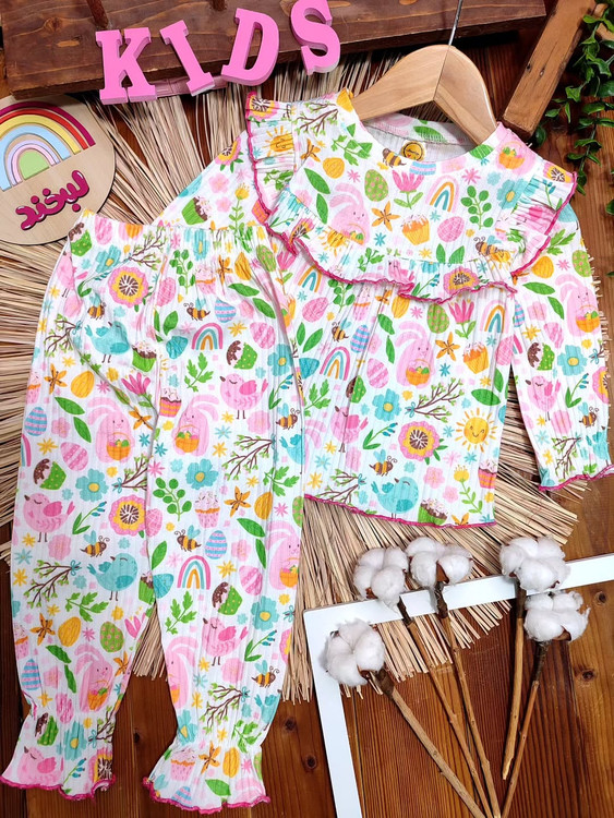 ست راحتی دخترانه نخ پنبه چیندار