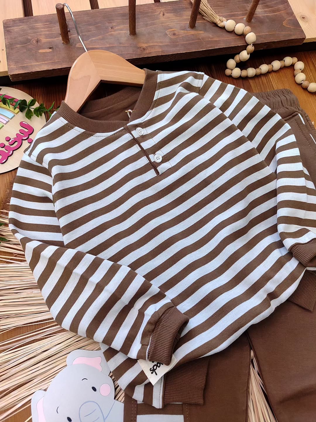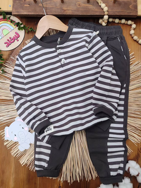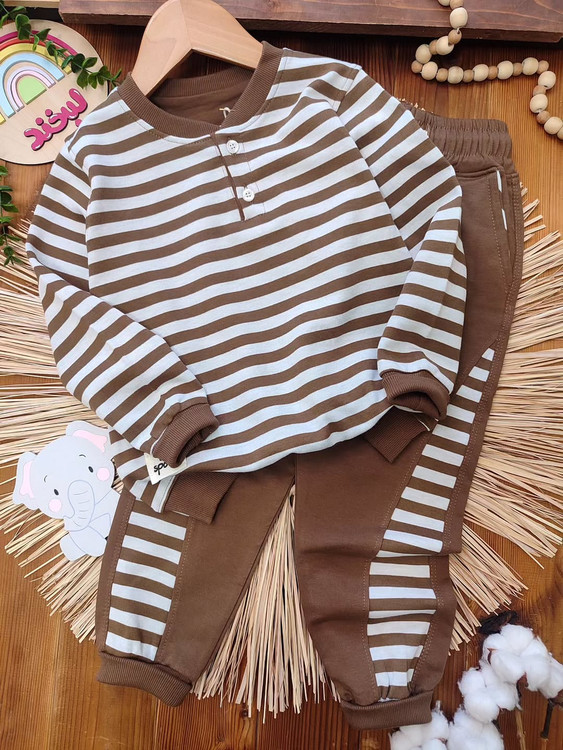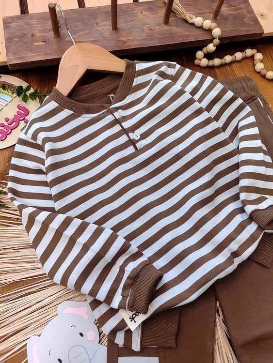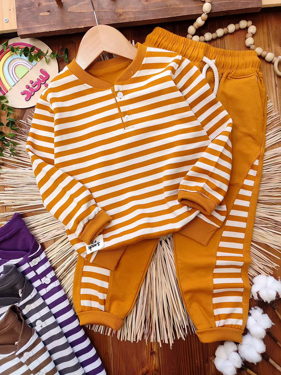 ترکیب جذاب بلوز آستین بلند و شلوار راحتی کودک با طراحی راهراه ترند، انتخابی عالی برای استایل روزمره بچهها 💛