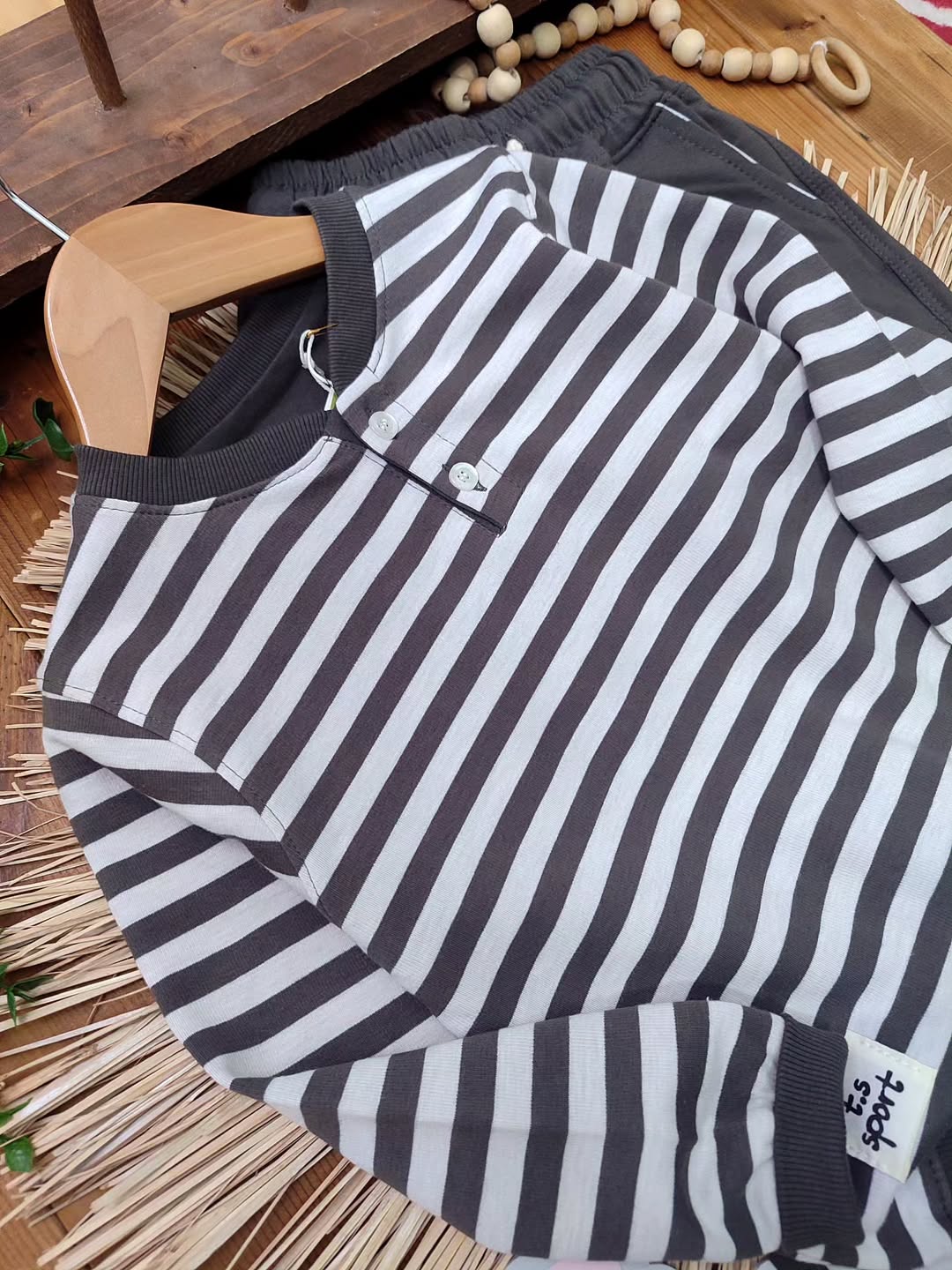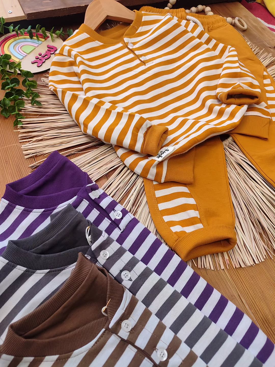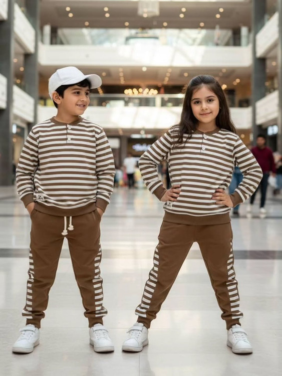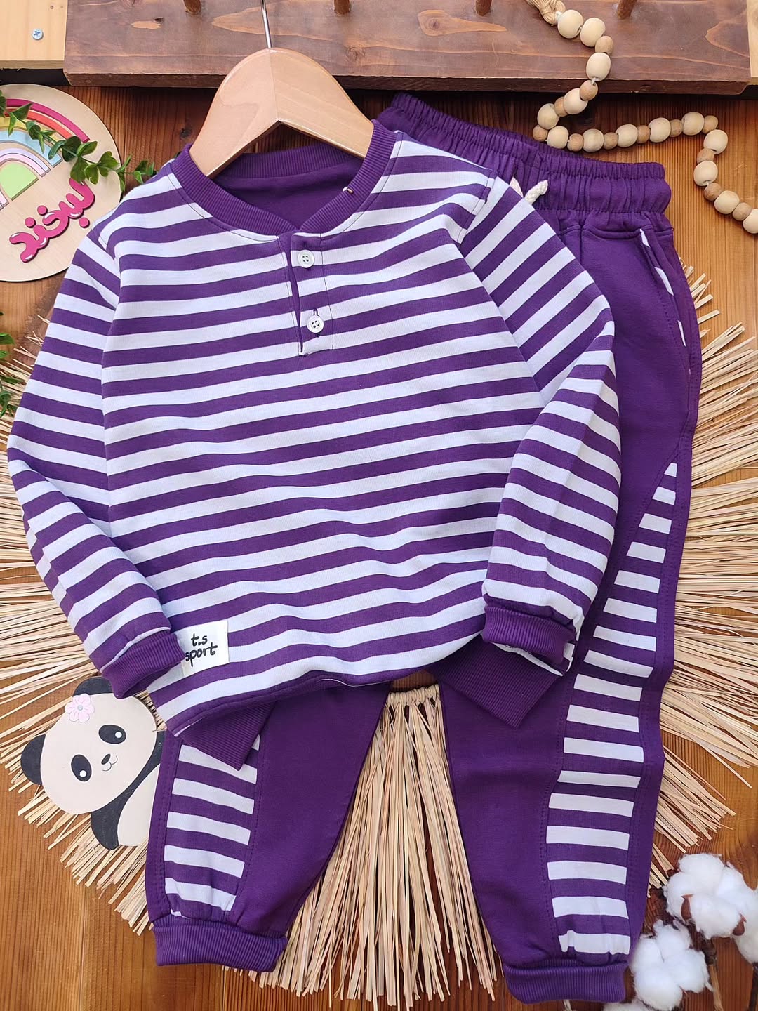 ترکیب جذاب بلوز آستین بلند و شلوار راحتی کودک با طراحی راهراه ترند، انتخابی عالی برای استایل روزمره بچهها 💛